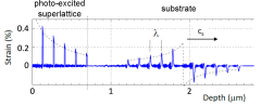 Our technique allows for generati quasi-monochromatic strain waves and monitor the propagation and decay in a substrate. In particular, we can select specific wavevectors of the generated phonons in a wide range, due to the large reciprocal-space vector accessible by hard x-rays. UXRD allows monitoring anharmonic phonon-phonon interactions and nonlinear propagation effects, e.g. the generation of harmonics of a propagating phonon.