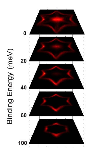 Sie untersuchten dafür das so genannte Warping der Fermi-Oberfläche, die die Energieverteilung der Leitungselektronen beschreibt. Mit dem Warp-Antrieb in der Science Fiction Serie Star Trek hat dies allerdings nicht viel zu tun, denn hier wird nicht die Raumzeit verbogen, sondern die Beziehung zwischen Energie und Impuls von Elektronen an der Oberfläche Topologischer Isolatoren. Allerdings gibt es wie in der Raumzeit einen Lichtkegel, den so genannten Dirac-Kegel, denn die Elektronen in topologischen Isolatoren verhalten sich annähernd wie Licht.