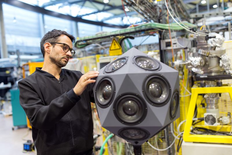 Gerriet K. Sharma and icosahedral loudspeakers at BESSY II (Photo: M. Setzpfandt)